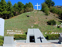 Suivant l' itinéraire vers le centre de neige de Ηelmos 'Panos Polkas', un peu hors de la ville de Kalavryta, on rencontre le lieu du sacrifice. C' est un point sacré ou a eu lieu l' holocauste de Kalavryta ou autrement dit le massacre de Kalavryta. Ce massacre est l' action criminelle la plus importante en Grèce pendant la 2ème guerre mondiale. C' était une mission d' assassin au nom 'Unternehmen Kalavryta' qui a commencé aux côtes d' Ahaia, au Péloponnèse du Nord. Les soldats de 'Wermacht' se sont dirigés vers la ville de Kalavryta en brûlant les villages. Quand ils sont arrivés à la ville ils ont enfermé toutes les femmes et les enfants, jusqu' à l' âge de 14 ans, à l' école et ils ont conduit tous les hommes qui avaient plus de 14 ans dans un champ un peu hors de la ville. Là, les troupes allemandes ont assassiné 800 citoyens innocents. 13 survivants ont pu échapper de ce crime horrible. Ils sont restés en silence enterrés parmi leurs compatriotes morts, intouchables des tirs individuels.